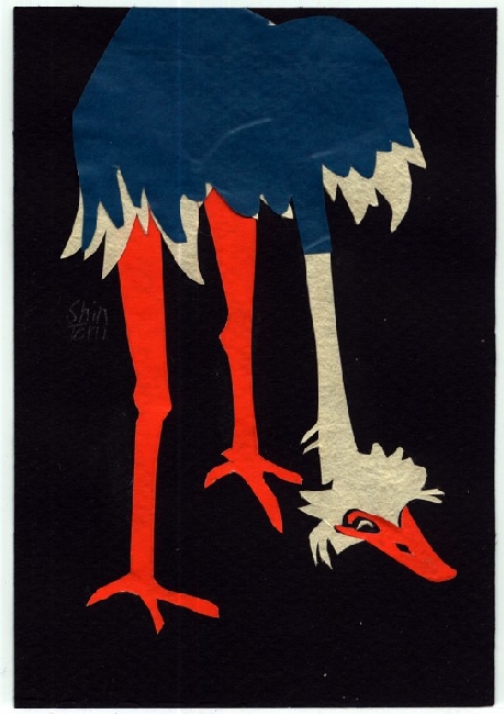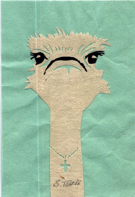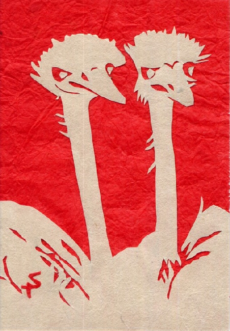 AN-37 ダチョウ品番:AN-37 切り絵 L判(縦・マット込)