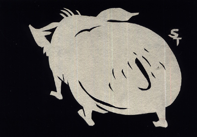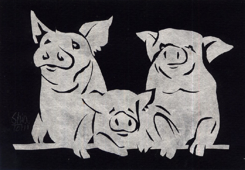 AN-38 ブタ 品番:AN-38 切り絵 L判(横・マット込)