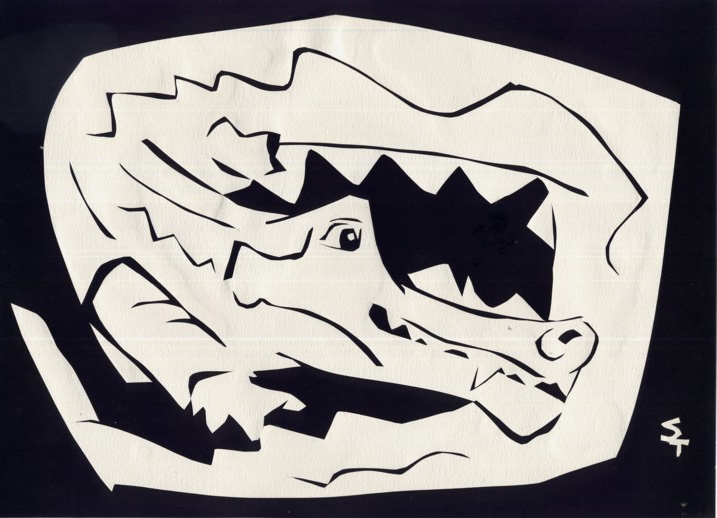 AN-52 ワニ 品番:AN-52 切り絵 A4(横・マット込)