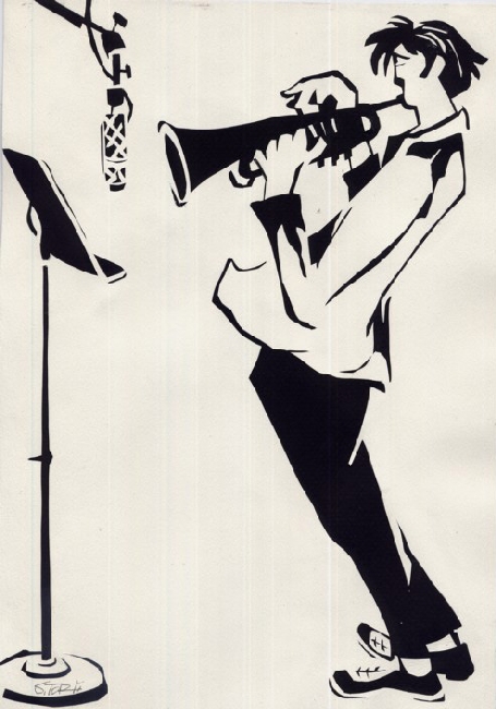 MU-09 トランペット品番:MU-09 切り絵 A4(縦・マット込)