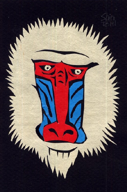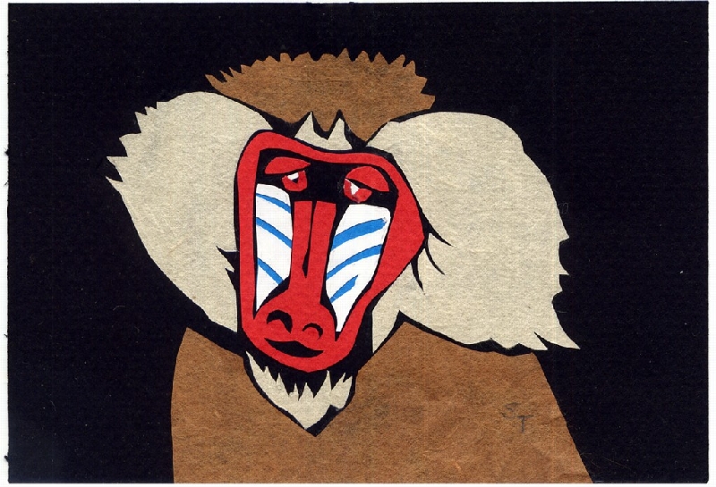 AN-32 マントヒヒ品番:AN-32 切り絵 L判(縦・マット込)