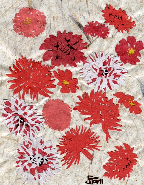 FL-01 ダリア品番:FL-01 切り絵 6ツ切(縦・マット込)