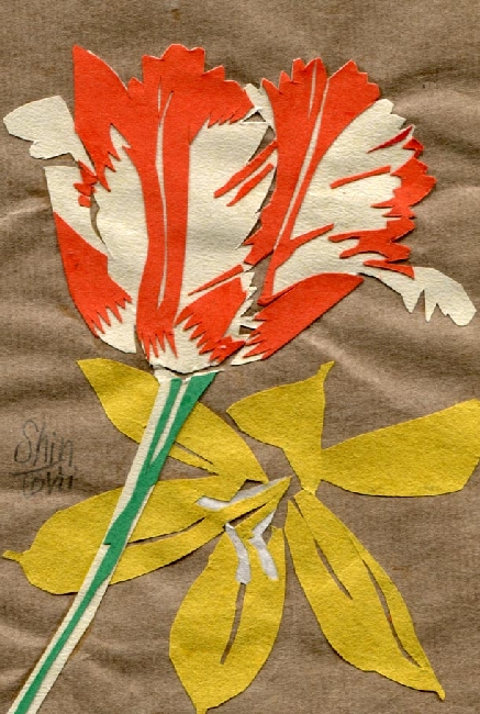 FL-09 チューリップ品番:FL-09 切り絵 L判(縦・マット込)