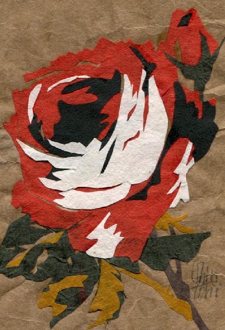 FL-31 枯れバラ品番:FL-31 切り絵 L判(縦・マット込)